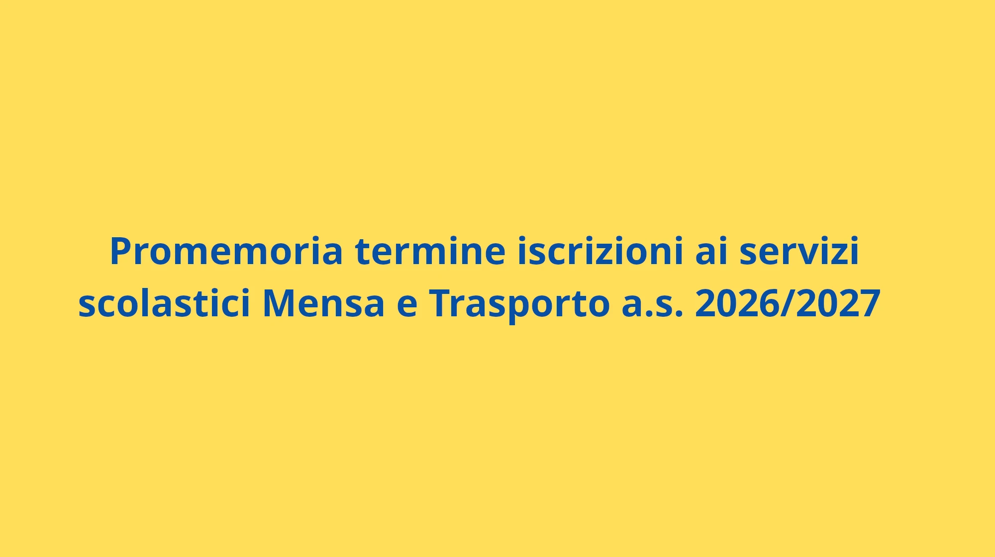 Si ricorda alle famiglie che il 31/03/2026 scadrà il termine per poter iscrivere i propri figli/e ai servizi scolastici Mensa, Trasporto, Riduzione Isee. In allegato il promemoria con le indicazioni per le modalità di iscrizione, da effettuarsi online tramite autenticazione con SPID o CIE.