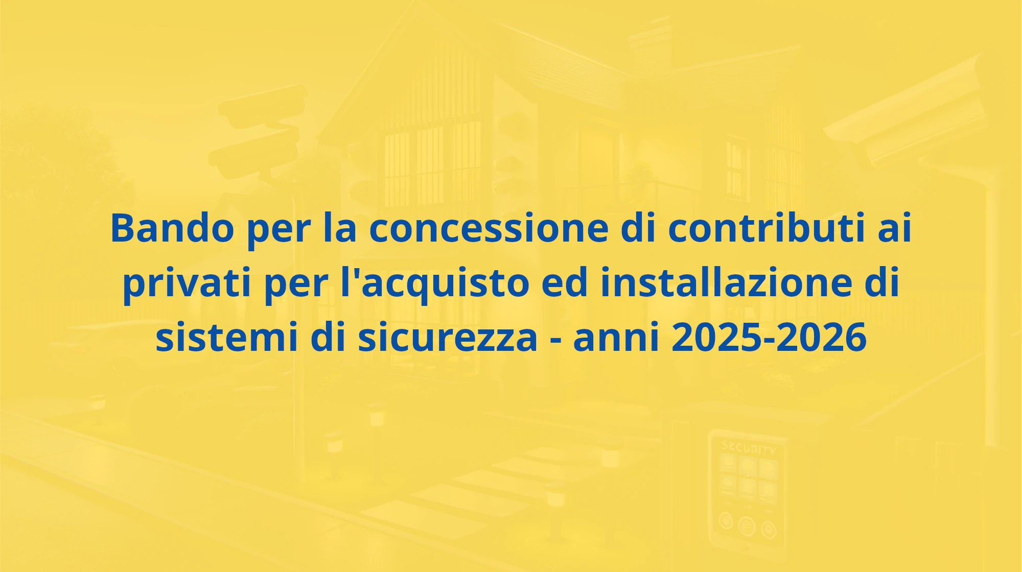 Bando anni 2025-26 per la concessione di contributi ai privati per l'acquisto, l’installazione, potenziamento, ampliamento e attivazione di sistemi di sicurezza presso edifici privati (programma regionale di finanziamento in materia di politiche di sicurezza).