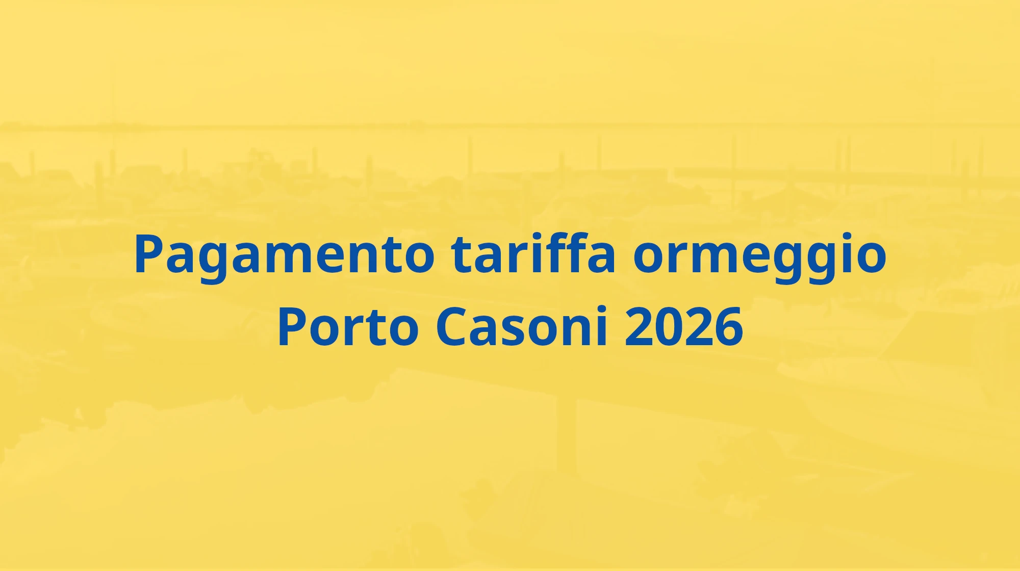 Si informa tutti gli assegnatari del posto ormeggio Porto Casoni che l'ufficio Patrimonio invierà i bollettini PAgoPA per il pagamento della tariffa ormeggio 2026.