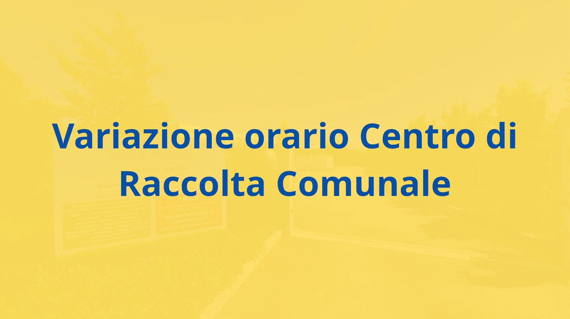 Si informa la cittadinanza che, a partire dal 01 aprile, l'orario di apertura del Centro di Raccolta Comunale osserverà l'orario estivo: dal lunedì al sabato dalle 13.00 alle 18.00.