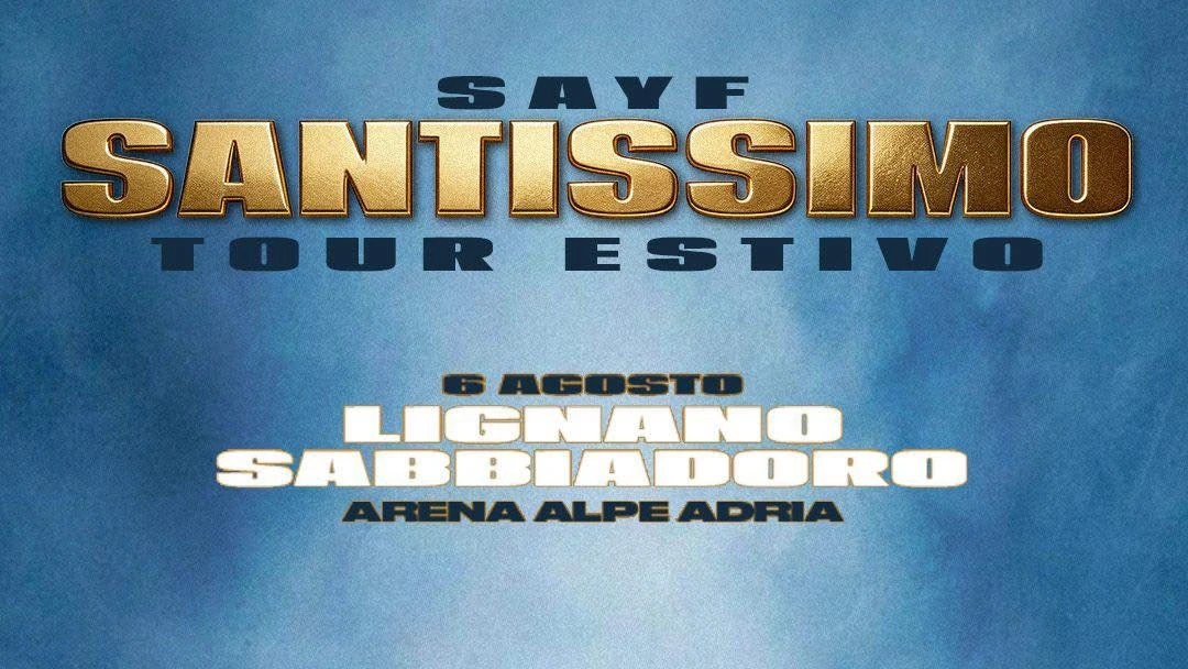 Dopo lo straordinario successo al Festival di Sanremo con il brano Disco d'Oro "TU MI PIACI TANTO" e il sold out fulmineo della data di Milano, Sayf annuncia il suo attesissimo tour estivo. Giovedì 6 agosto alle 21.00, il giovane talento genovese porterà sul palco della nostra Arena Alpe Adria tutta la sua autenticità e il suo mix unico di riflessioni personali e sonorità urban.